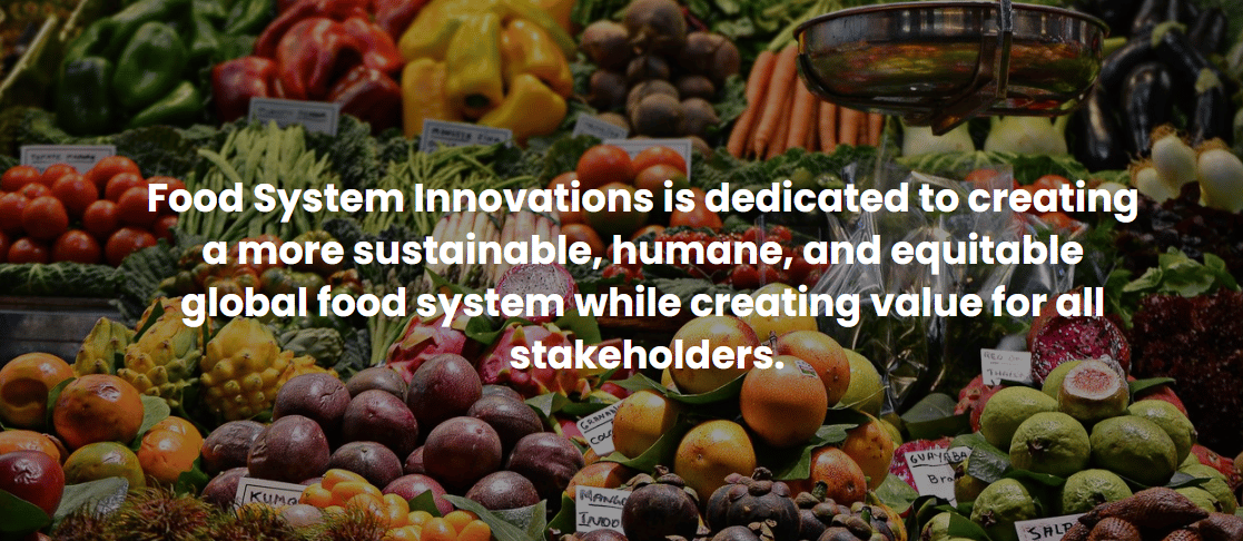 Food System Innovations is committed to creating a more sustainable, humane, and equitable global food system while generating value for all stakeholders. They support various projects and solutions that drive change across the entire food value chain.